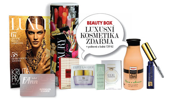 včera jsem se u Mii na blogu dozvěděla o téhle super novince jménem beauty box. a o co jde? vy si na stránce www.luxurybeautyguide.cz objednáte svůj beauty box, zaplatíte 139 korun za poštovné a balné a budete vyčkávat kdy vám domů dorazí balíček který bude obsahovat dva luxusní kosmetické produkty, nějaké vzorky, časopis, slevovou fann kartičku, nějaké ty informace.. co bude beauty box konkrétně obsahovat je tajemství, takže o to lepší to je 🙂