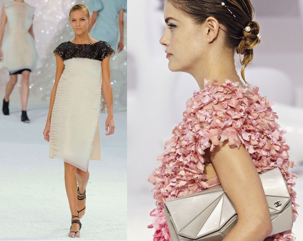 přehlídky této značky jsou vždycky originální, nápadité a přesně podle mého vkusu. nezažila jsem, aby se Karlovi nějaká přehlídka nepovedla, abych se nezamilovala aspoň do milionu kousků z kolekce a nechtěla je mít doma. i když je můj styl dost rozmanitý, kdybych si měla vybrat, kde bych se chtěla denně oblékat, byl by to rozhodně Chanel. perly, bílá, pastelové barvy, zajímavé střihy, volánky, lehkost, stříbrné boty a malá mořská víla – to je pro mě Chanel jaro/léto 2012.